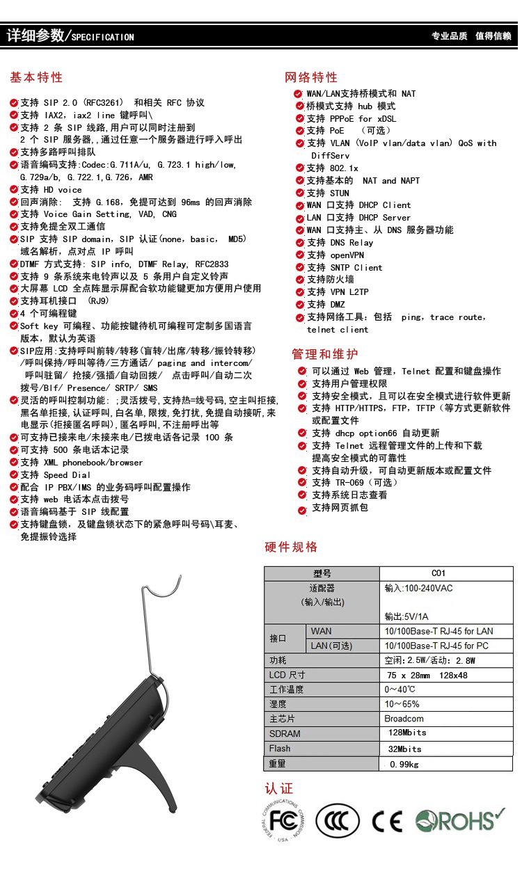 康达特Sip phone E01 专业呼叫中心话盒